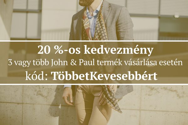 A 20% -os kedvezmény a három vagy több John & Paul termékre, a márka bármely termékének bármilyen kombinációjára vonatkozik, így a korábbi évekhez képest nem csupán három inget lehet kiválasztani.