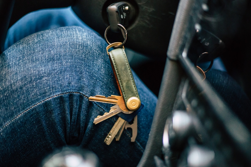 - Autókulcsok a hozzácsatolt Orbitkey Ring-en