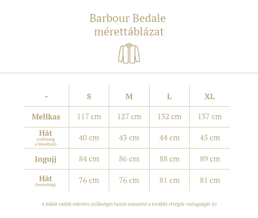 A Bedale a modern életre lett tervezve - kényelmes, szabadabb szabás, nem komplikált, időtlen külső, praktikus rövidebb kabáthossz, hátsó, gombolható szellőző nyílás. Vízálló, viaszos bevonatú pamutból, kézzel varrva. A belső oldalán található egy tipikus skótkockás mintázatú bélés, a kézujjak pedig recézett, pamut mandzsettával végződnek, a jobb téli kényelem érdekében.