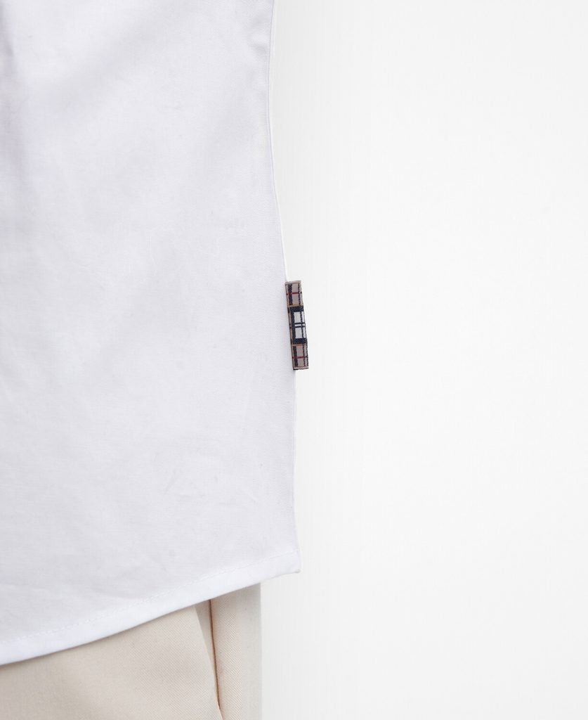 Ing rusztikus oxfordi pamutból, kellemes szabással. A Barbour természetesen nem feledkezett meg a gallér belsejében rejlő tartán részletekről sem – ahogy illik.