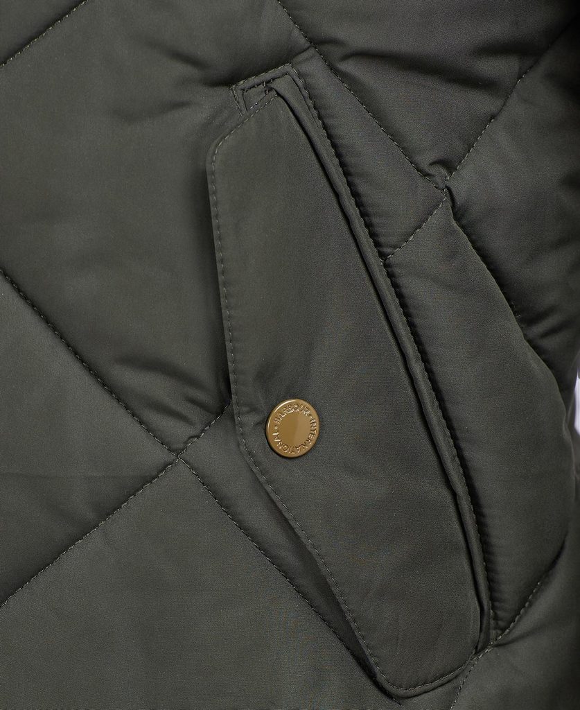 Modern, enyhén kivágott szabású, egyenes szabású, és steppelt poliamid béléssel rendelkezik a további hőkomfort érdekében. Kétoldalas cipzárral, gombos gallérral, bordázattal a mandzsettán és a szegélyen, két oldalsó zsebbel és egy jellegzetes felvarrással a mellkason.