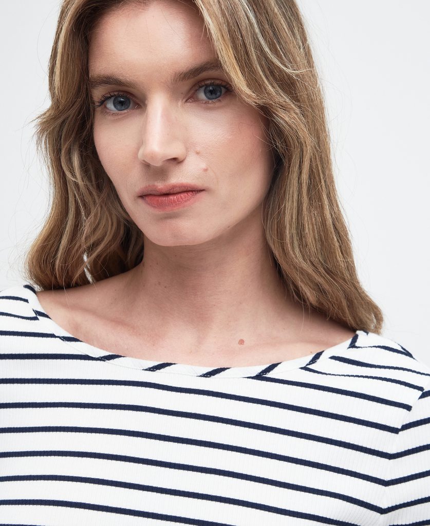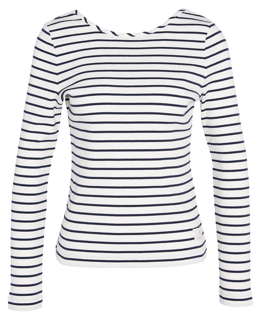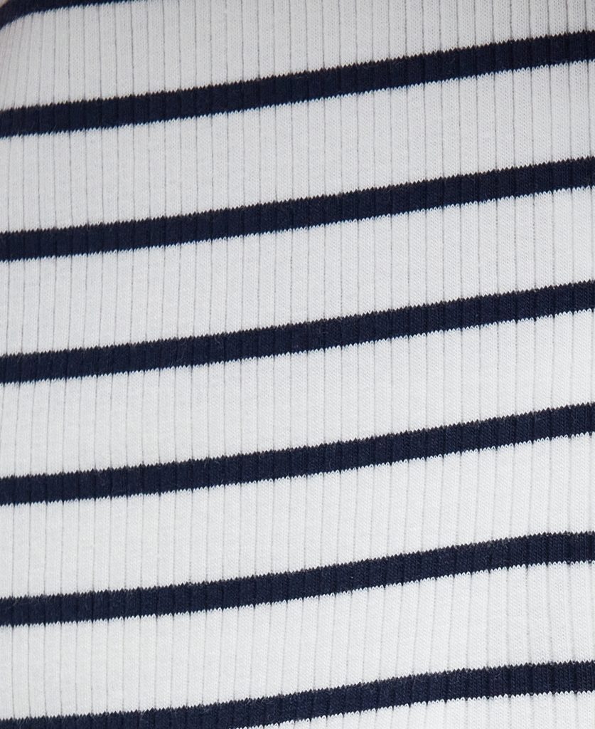 Csíkos és bordázott. A kötött anyag teszi ezt a darabot alkalmassá az átmeneti hónapokra; hosszú ujjakkal és különleges szabással rendelkezik, amely finoman leleplezi a hát felső részét. A maximális kényelem érdekében a pamut egy csipetnyi elasztánnal van kiegészítve.