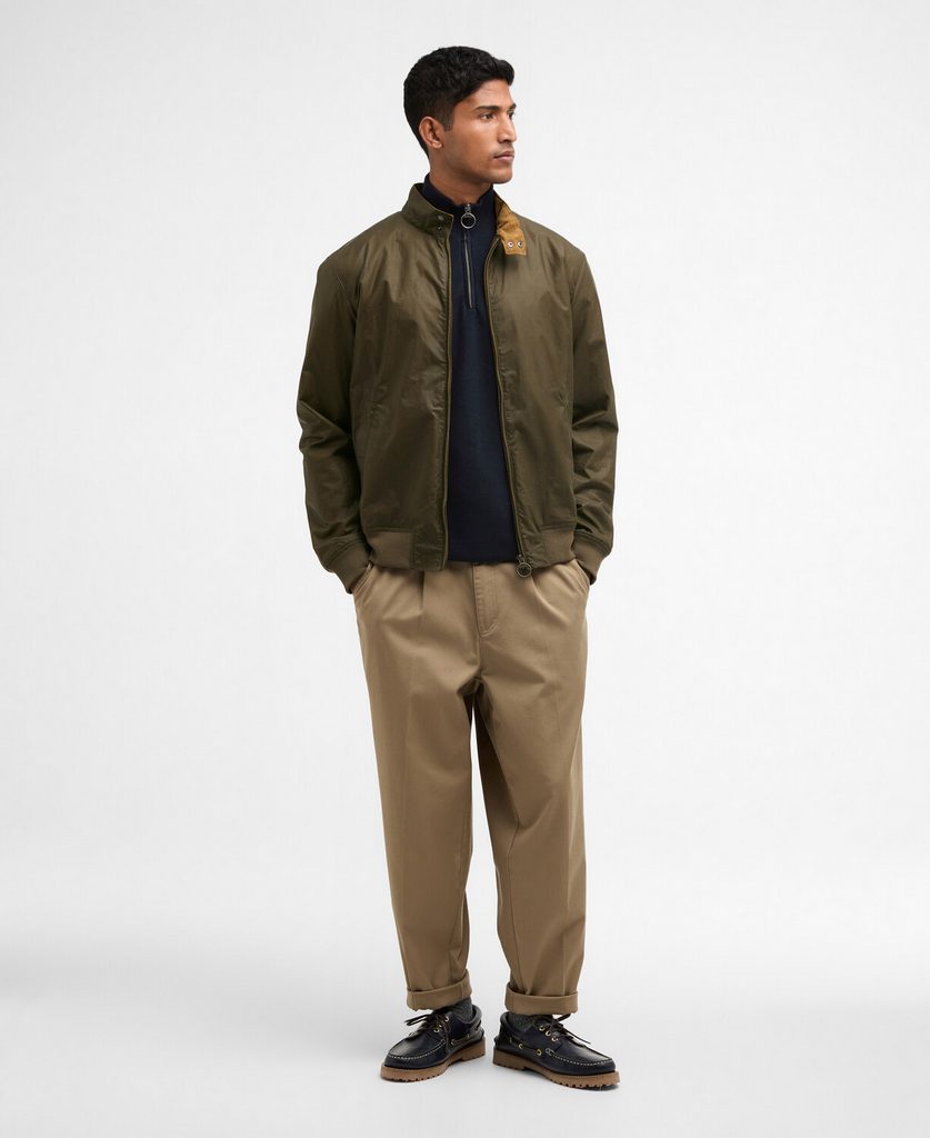 Sportos szabású Barbour Royston viaszos dzseki, amely a márkára jellemző, hagyományos viaszos pamutból készült. Ezúttal annak mintegy harmadával könnyebb változatát használták, így a modell a melegebb hónapokban is kényelmesen viselhető.