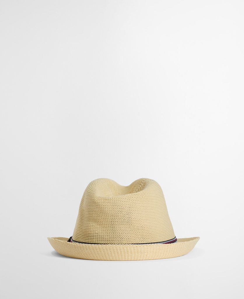 Tollkönnyű nyári kalap mesterséges szalmából, sárgás színben, gyönyörűen szőtt izzadságszalaggal. Igazi elegáns úriember válik Önből!