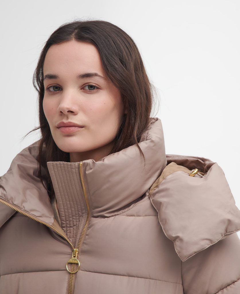 Hasonlóan a trench coat kabátokhoz, a derékrész itt is összehúzható és megköthető – nem valódi övvel, hanem zsinórral. Ez lehetőséget ad a kabát többféle viselésére, akár nyitva, akár begombolva. A megjelenést tovább gazdagítják az aranyszínű részletek – a cipzár, a patentek a garbós galléron –, valamint a nyakrésznél látható tartán bélés.