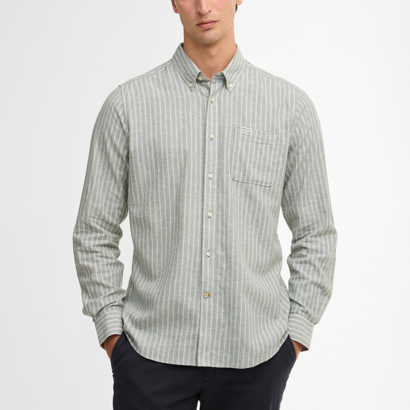 A Barbour Nelson ing len és pamut keverékéből, vászonkötéssel készül. Könnyű, jól szellőző darab, amely az enzimes kezelésnek köszönhetően már az első viseléskor kellemesen puha tapintású. A karcsúsítottabb szabás (tailored fit) letisztult vonalvezetést biztosít anélkül, hogy szorítana, így a legtöbb testalkaton jól mutat. Gombos gallérral és mellzsebbel egészül ki.