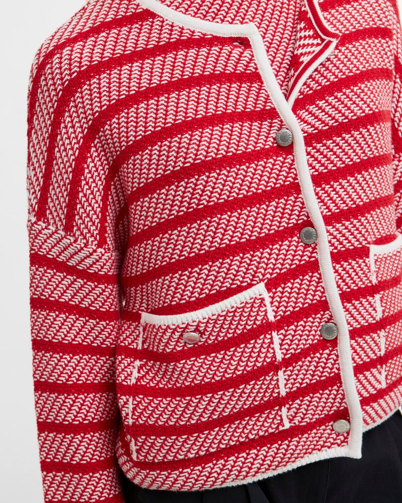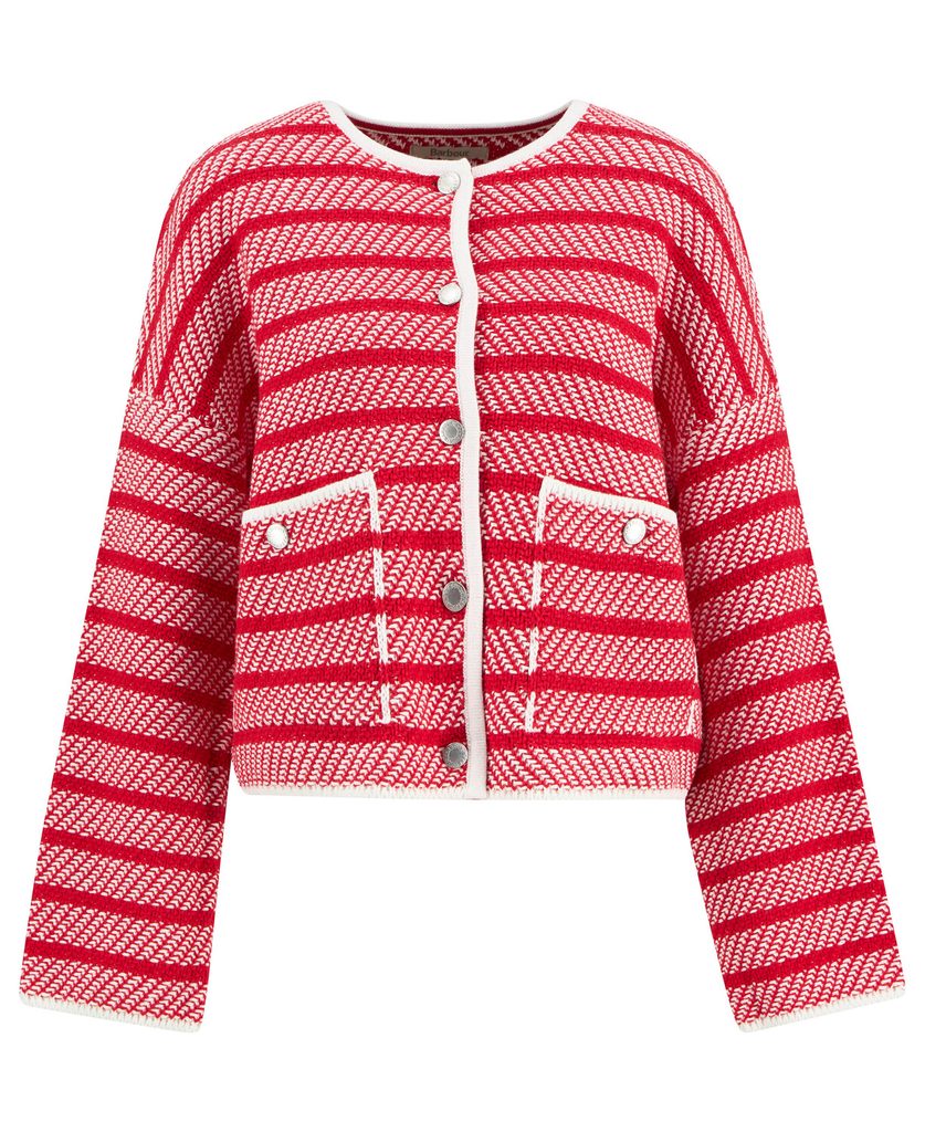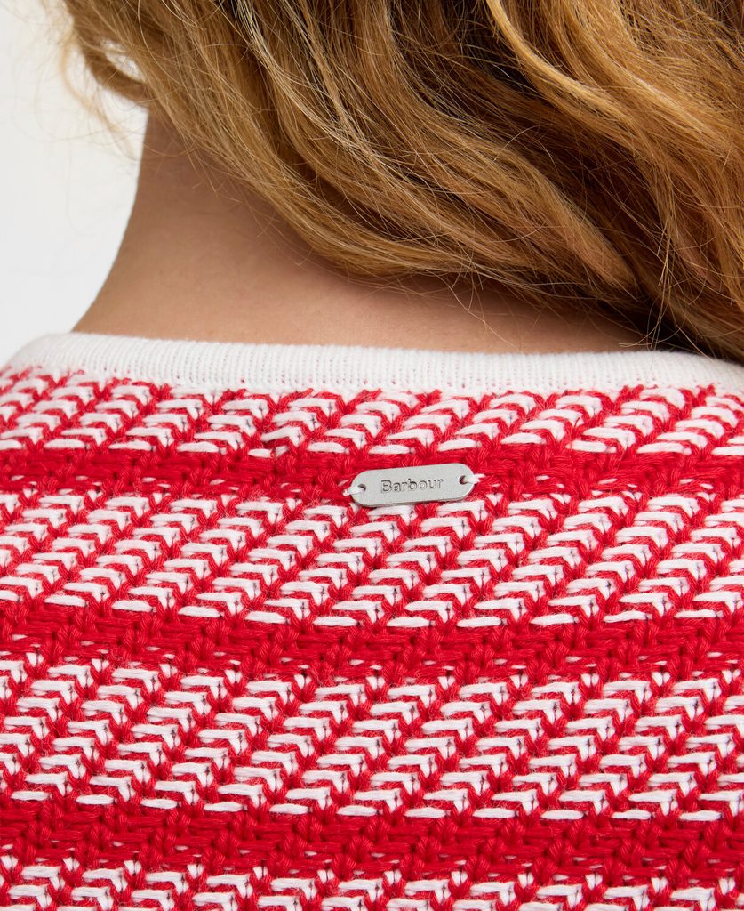 A brit Barbour Polly női kardigánja szinte ünnepélyes hangulatot ad a könnyű kötött darabok világának, köszönhetően a szép zsákár mintának. Az idei női kollekció több darabjához hasonlóan ez is valamivel rövidebb szabású, így különösen jól mutat magasabb derekú nadrágokkal, de egyszínű toppal vagy inggel rétegezve is kiváló választás. Két rávarrt zseb és Barbour logóval ellátott gombok teszik teljessé. Könnyű darab tavaszra és őszre.