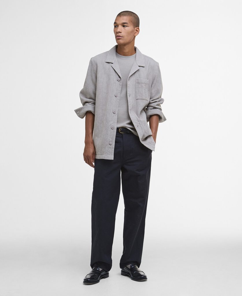 Letisztult szabású overshirt, kevésbé letisztult textúrával. A strapabíró, kissé vadászhatású, gofri mintás pamutszövet terepre kész megjelenést kölcsönöz, mintha már meg is edződött volna az elemek között. A kényelmet azonban a két oldalzseb biztosítja, a stílust pedig a színben harmonizáló gombok és a lapos gallér emelik. Sőt, a gallér belső oldalán diszkrét tartáncsík is megbújik…