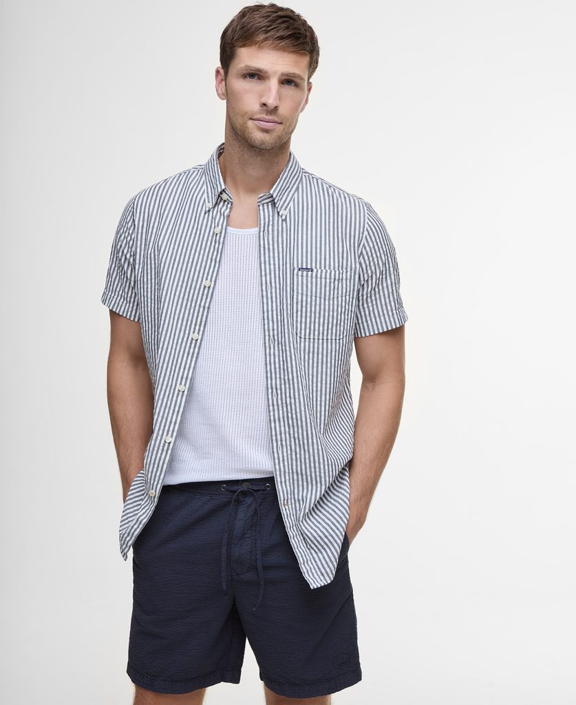 A seersucker anyag ma már elengedhetetlen a nyári ingekhez. A Barbour idei kollekciójában ezt a laza, légies textúrát kiterjeszti ezekre a rövidnadrágokra is. Az innovatív megoldások mellett a klasszikus elemeket is megtalálja: két zseb, zsinóros megkötés és legfőképpen a kényelmes, laza szabás, amit nem akar majd levenni.