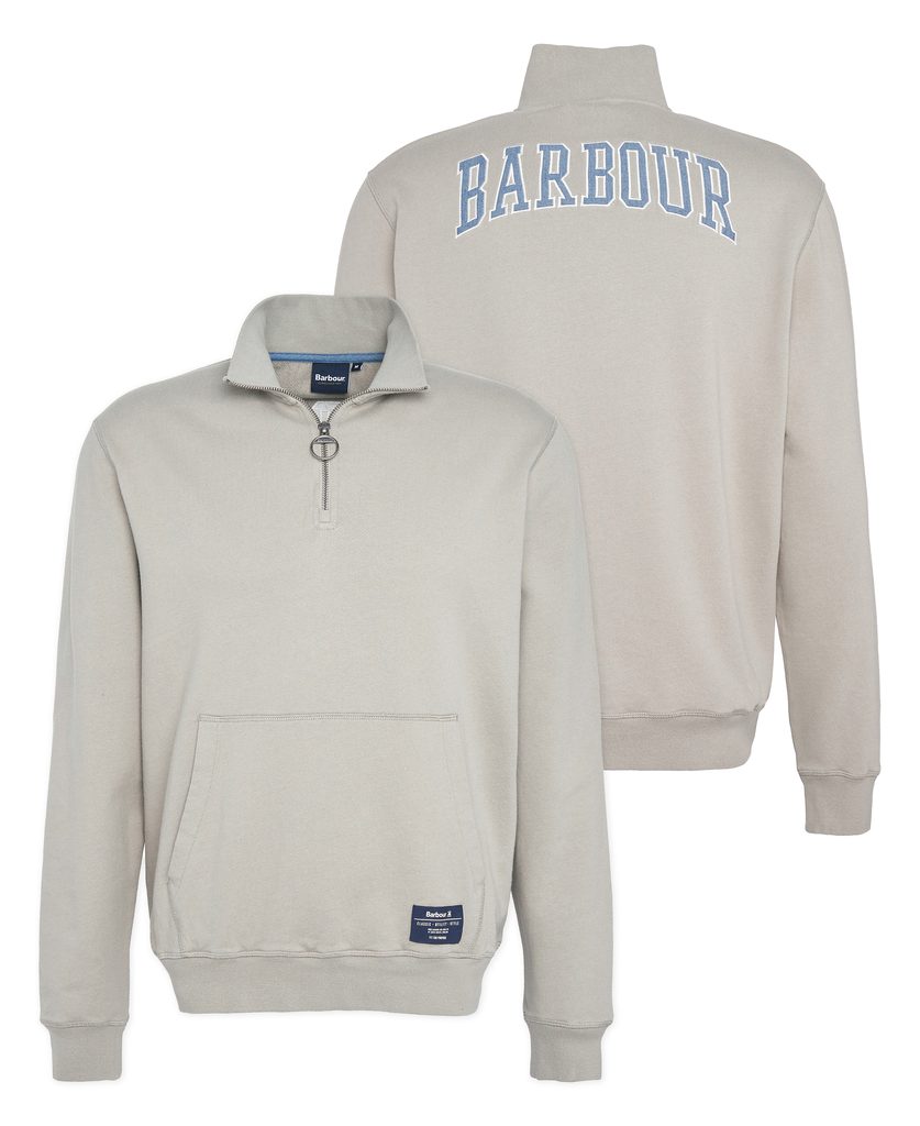 Ez a khaki színű, cipzáras pulóver feltűnően emlékeztet a klasszikus amerikai egyetemi pulóverekre. Kenguru zseb, elasztikus sima szegély és mandzsetta... még Barbour felirat is van a hátán! (Igaz, a Barbour nem túl amerikai...) 100% pamutból készült, 240 g/m2 -ben, ami - legalábbis a pulóverek szabványaihoz képest - a jó középút.