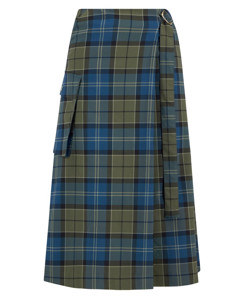 Masszív tartán szoknya maxi hosszban (bokáig érő), amelyet kék-szürke tartánminta díszít. Az anyag keprűszövésű, így a szoknya rendkívül tartós, ugyanakkor kellemes tapintású.