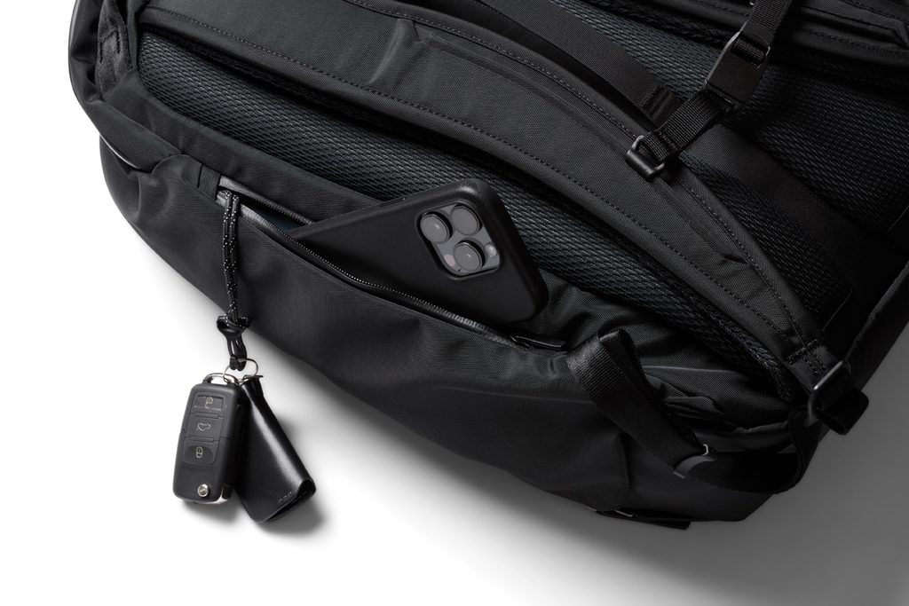 Okosan kialakított belső rendszere rengeteg zsebet kínál, de a külső rész is jól átgondolt: oldalsó, rejtett zsebek a legfontosabbakhoz, és egy párnázott felső tok a szemüvegnek – minden kéznél van, amit a nap során elérhető közelségben szeretne tudni.