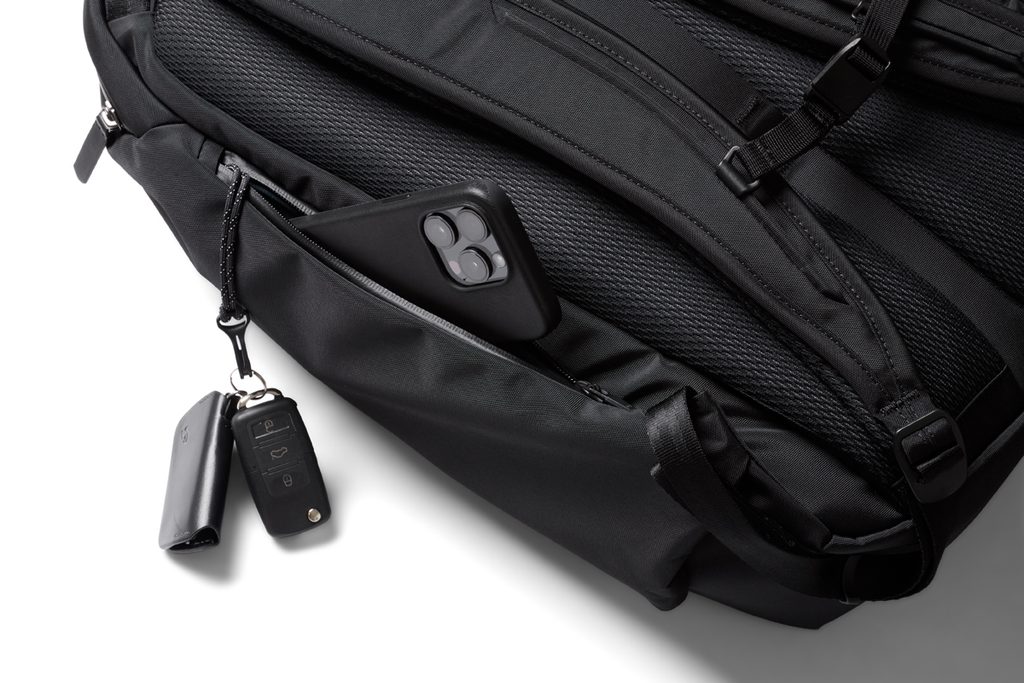 - Rejtett oldalsó zsebek a telefon, pénztárca vagy vizes palack gyors eléréséhez