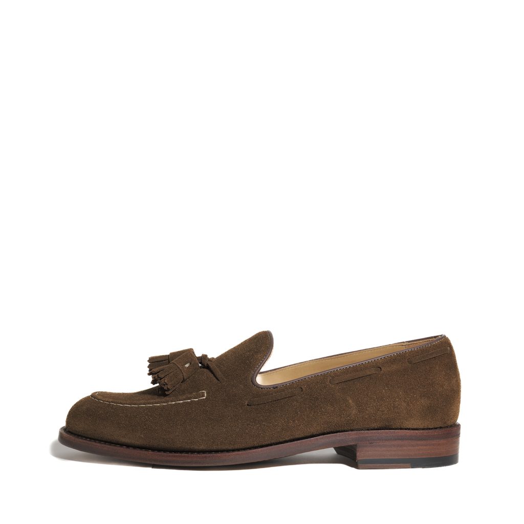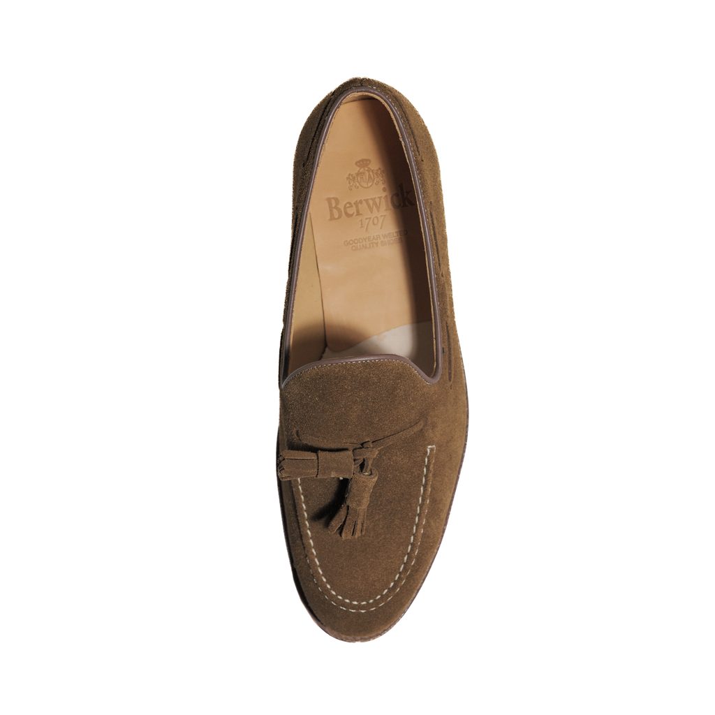 A Tassel loafer – azaz a rüsztnél jellegzetes díszbojtokkal ellátott mokaszin – talán a leglezzserebb a formális cipők közül. Karakterét a sima bőr és a dekoratív brogue perforáció (lyuggatott díszítés) teszi teljessé. Természetes vonzereje kiválóan érvényesül például egy blézerrel és chinos nadrággal kombinálva.