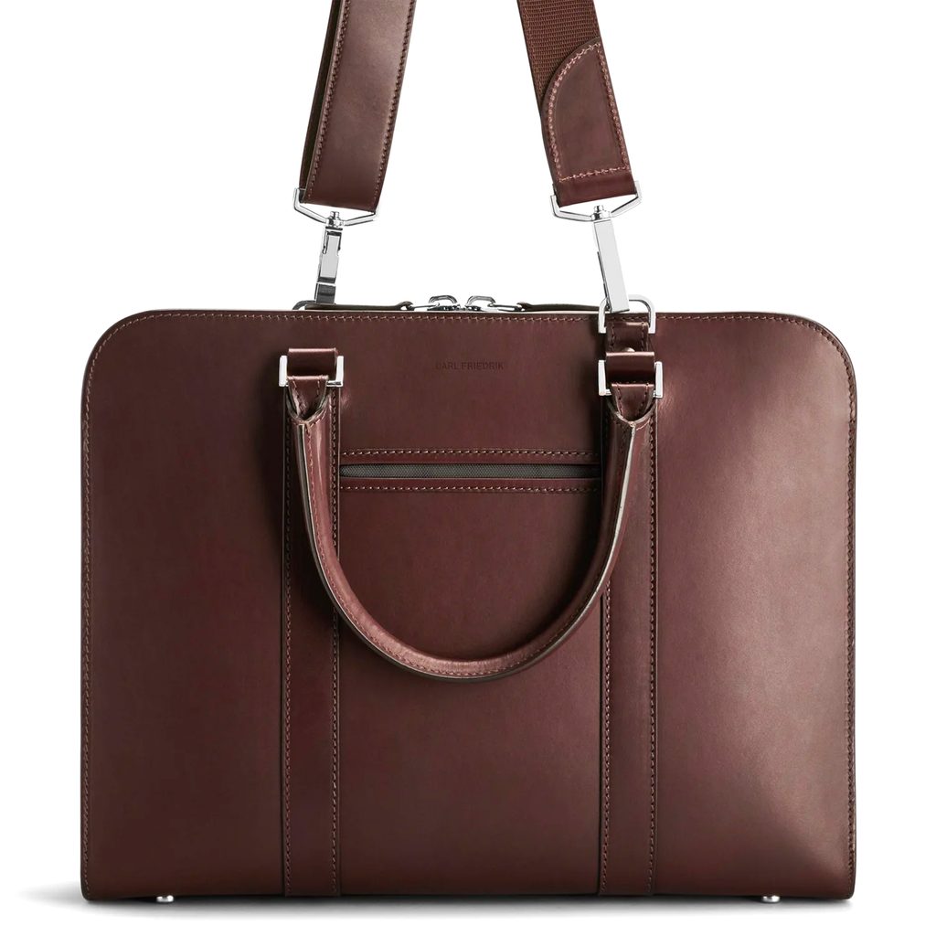 Ez a darab – a mi kedvencünk, és ki tudja, talán hamarosan az Öné is – kézzel készült Olaszországban, egy kőhajításnyira Nápolytól. A gyártó? A svéd Carl Friedrik, amely nemcsak formára, hanem funkcionalitásra is nagy hangsúlyt fektet. Az ő gondosságuknak köszönhetően kapott a táska átgondolt belső elrendezést: a fő rekeszbe – amelyet kézzel polírozott cipzár zár – kényelmesen elfér akár egy 15″-os laptop is, valamint minden egyéb, amit a munkanap során szükségesnek tart. A kényelmet fokozza a levehető, prémium minőségű vállpánt és egy praktikus bőr fogantyú, mellyel a táska egyszerűen rögzíthető egy utazóbőröndhöz.