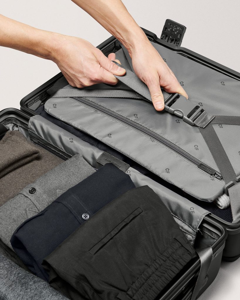 Carl Friedrik bőröndje, amely a legjobb útitárs. Méretei megfelelnek a kézipoggyászokra vonatkozó szabályoknak, nyitott belső elrendezésű, praktikus, zsinóros pántokkal, amelyekkel rengeteg helyet takaríthat meg, tartós zárszerkezettel (nincs többé fáradságos cipzárnyitás, csak kattintson a csatokra), nagyszerű kerekekkel a maximális csendességért, vagy akár luxus olasz vachetta bőrből készült részletekkel.