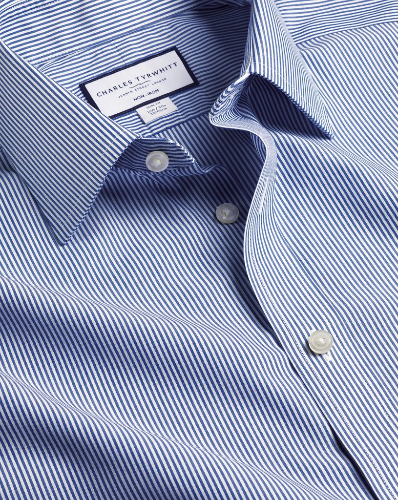 Charles Tyrwhitt Spread Collar Non-Iron Bengal Stripe Shirt — Royal Blue Extra Slim fit | 38 | 84 (Standard)