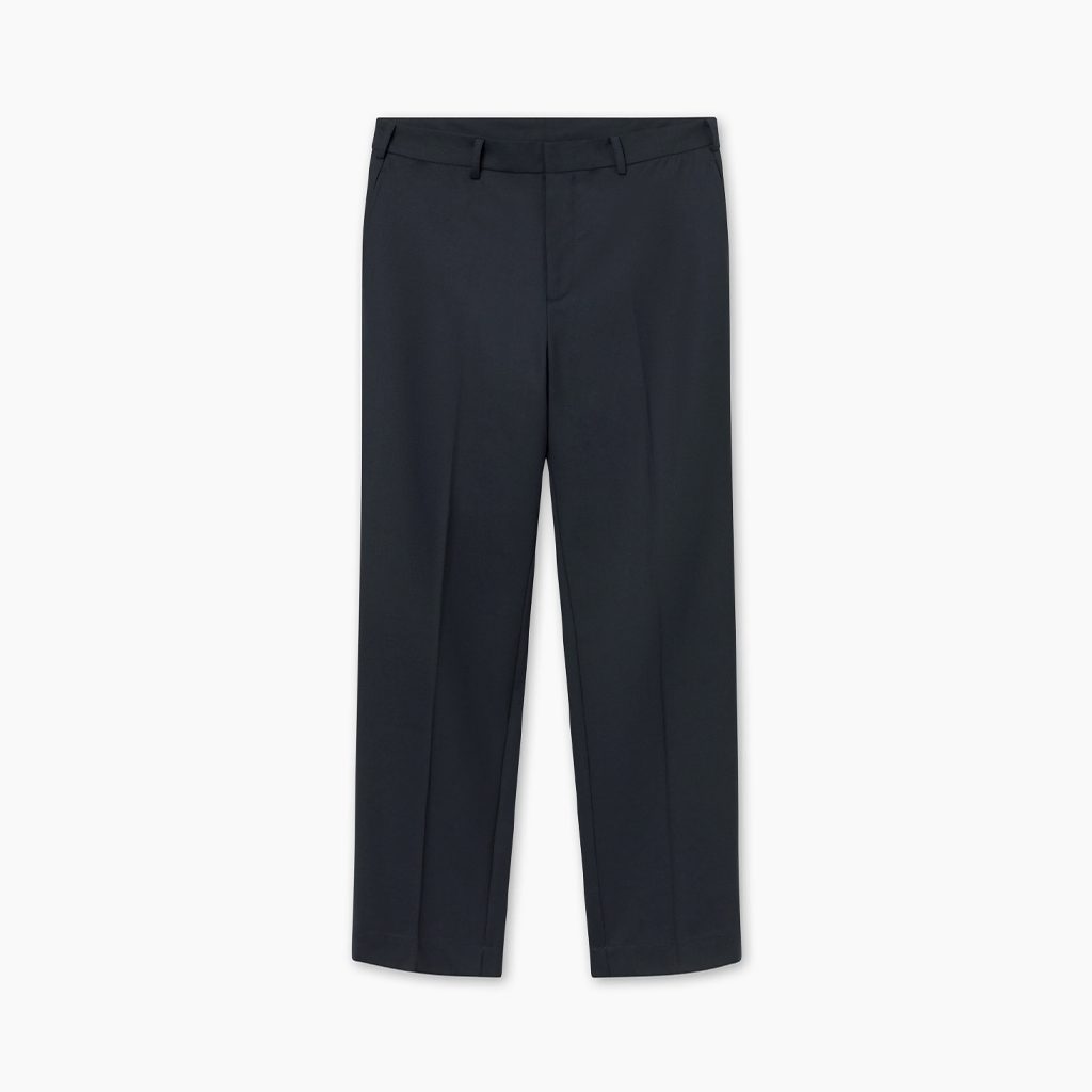Gyapjú és poliészter keverékéből készült nadrág, amely a feltűnőséggel épp ellentétes. Markánsan széles sziluettel rendelkezik, a választott anyagnak köszönhetően pedig a régebbi öltönynadrágok stílusát idézi, különösen a bővebb, amerikai szabásvonalat. Ezt erősítik a vasalt élek és a klasszikus kialakítású, rejtett záródás is. Az övbújtatók természetesen nem hiányoznak róla.