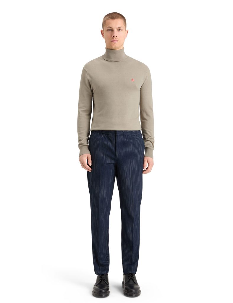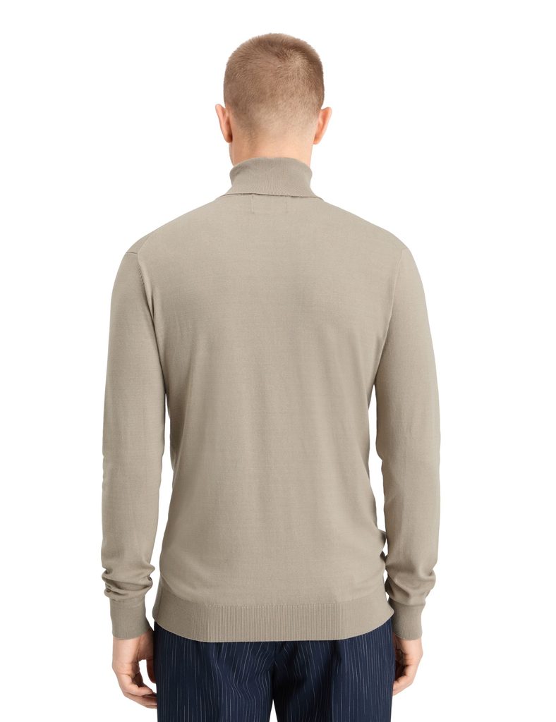Ez a minimalista garbó szokatlan (és mégis szemet gyönyörködtető) „mokka” színben szinte techwear-szerű. Rögtön az elején emeljük ki a klasszikus szabás mellett a jellegzetes elasztikus szegélyt, amely a derék fölött egy tisztességes túlnyúlást hoz létre az anyagból - így a garbó egy kis fantáziával és a rétegezéshez szükséges szemmel betűrhető. Maga a garbó természetesen magas, így remekül működik hosszú nyakú férfiaknak, akiknek még jelentősen hízelgő is. A dizájnt a bal mellkason található ampersand márkajelzés egészíti ki.
