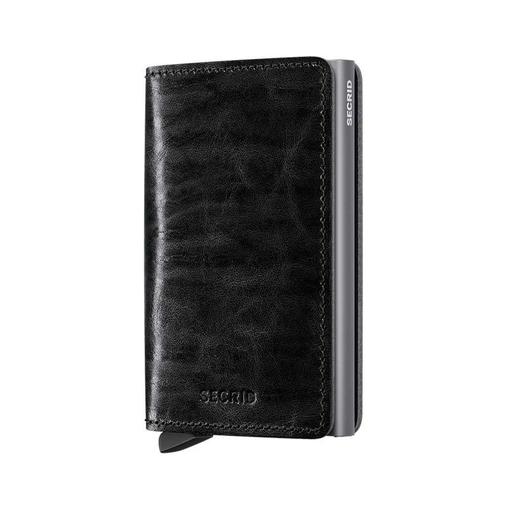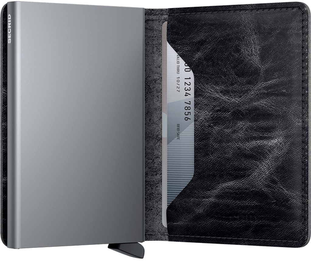 Ennél a karcsú pénztárcánál a kártyák számára biztosított hely kapja a főszerepet – hiszen ma már szinte elképzelhetetlen az élet nélkülük. A Secrid pénztárca központi eleme ezért egy könnyű és vékony alumíniumtok, amely 4–6 kártyát képes tárolni attól függően, hogy dombornyomottak-e vagy sem. A kártyákhoz való hozzáférés egyszerű – egy műanyag kihúzható kar segítségével történik. A szabadalmaztatott kialakításnak és a felhasznált anyagnak köszönhetően a tok RFID-védelemmel is el van látva, amely megakadályozza a kártyák távoli lemásolását.