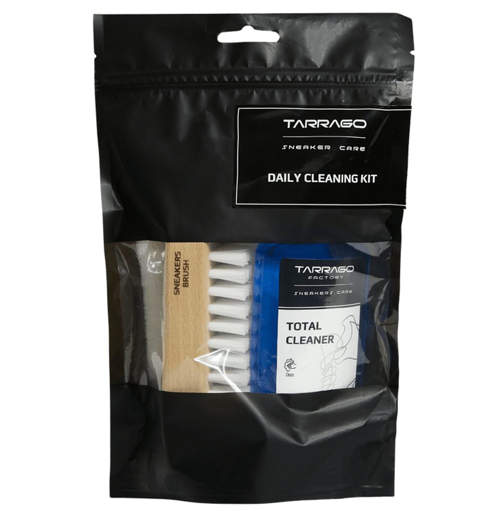 Alapvető, rendszeres tisztításhoz való készlet a sportcipő-ápolás mesterétől, a spanyol Tarrago márkától. A matt fekete tokban három elengedhetetlen eszközt talál a rendszeres karbantartáshoz, legyen szó teljes tisztításról vagy helyi folteltávolításról. Használható bőrre, velúrra és szövetre egyaránt.