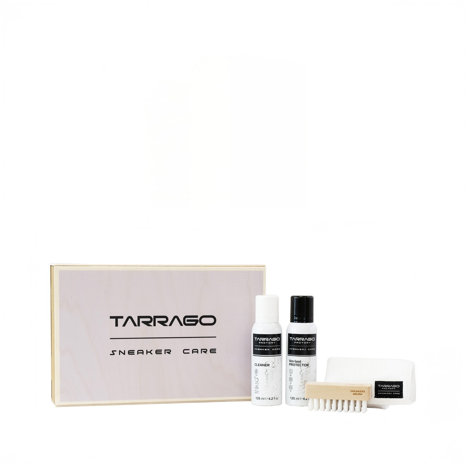 A Tarrago tisztítószerek gyártása során egyetlen darab szenet sem bányásztak ki, és egyetlen állatnak sem esett bántódása, de mindig van hová fejlődni. Ez a közepes méretű sportcipő-ápoló készlet környezetbarát (mégis gyönyörű és minimalista) csomagolást kapott – a doboz helyi, ellenőrzött forrásból származó fából készült.